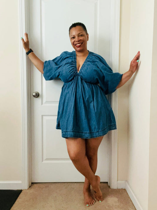 PUFF SLEEVE DENIM DRESS