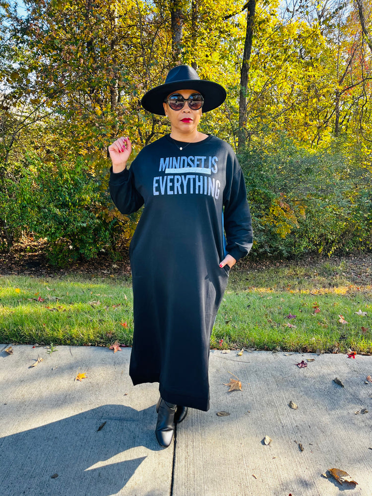 HALF DENIM SWEATSHIRT MAXI DRESS